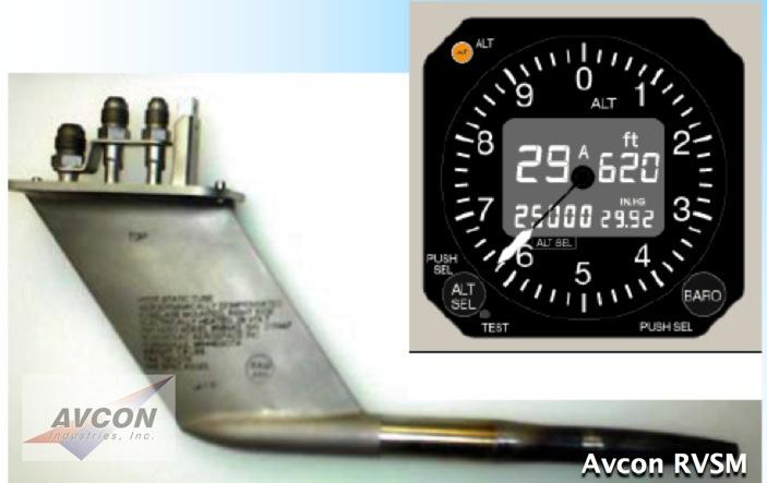 The RVSM installation changes the existing air data sensor interface to your autopilot and flight director systems. The Second Generation Kollsman ADC's will interface seamlessly with Universal, Sandel, and other "State of the Art" glass cockpit displays. Your existing autopilot computer may be inspected and repaired (if necessary) by an outside vendor.